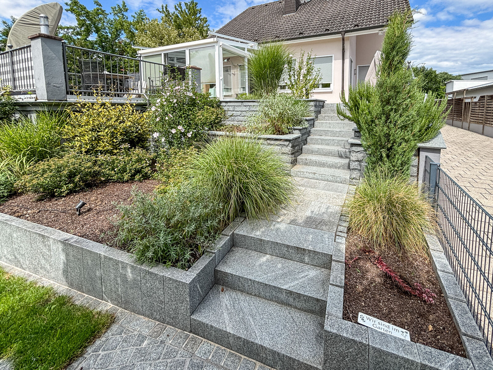 - Erstellung von Bauwerken aller Art (Terrassen, Treppen, Mauern, Pflasterungen, usw.)